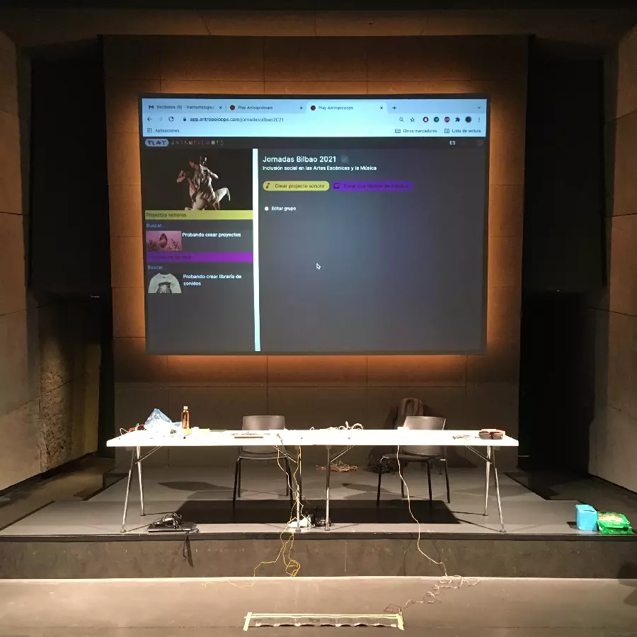 In September 2021 we were invited by the Instituto Nacional de las Artes Escénicas y de la Música (INAEM) to participate in the XIII Jornadas sobre Inclusión Social y Educación en las Artes Escénicas, held in Bilbao, at the cultural center Azkuna Zentroa-Alhóndiga.